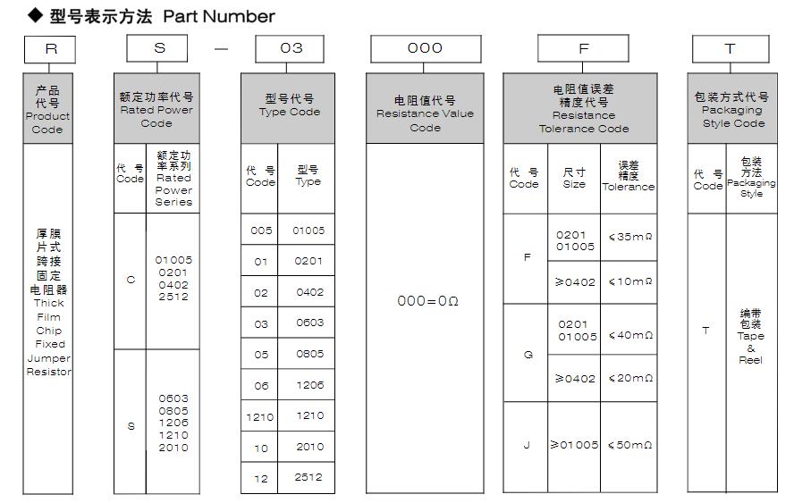風華高科厚膜片式跨接固定接電阻器型號表示方法: