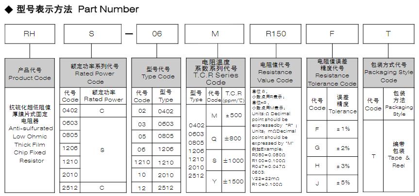 風華高科抗硫化超低阻值厚膜片式固定電阻器型號命名規(guī)則:
