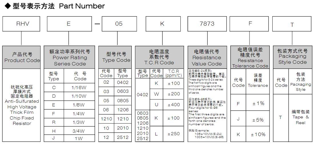 風(fēng)華高科抗硫化高壓厚膜片式固定電阻器型號命名規(guī)則: