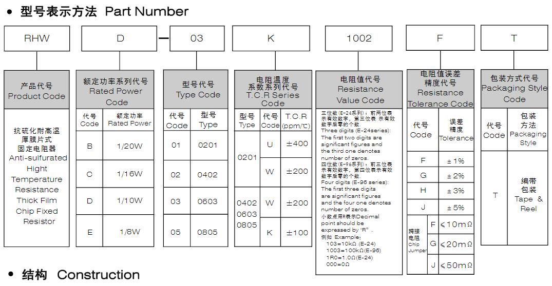 風華高科抗硫化耐高溫厚膜片式固定電阻器型號命名規則:
