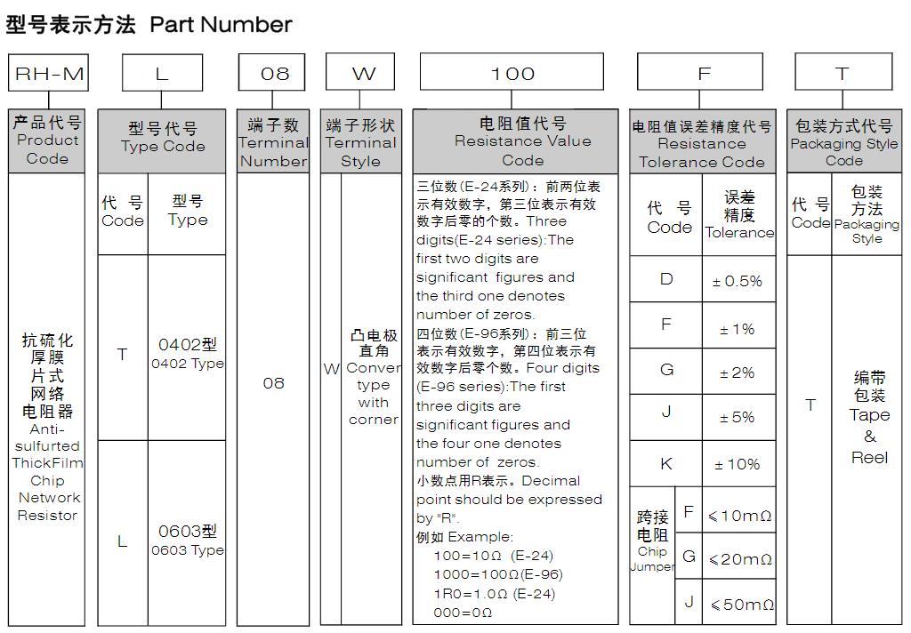 風華高科 抗硫化厚膜片式網絡電阻器型號命名規則: