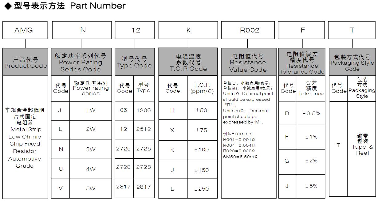 風(fēng)華高科車規(guī)合金超低阻值片式固定電阻器型號(hào)命名規(guī)則: