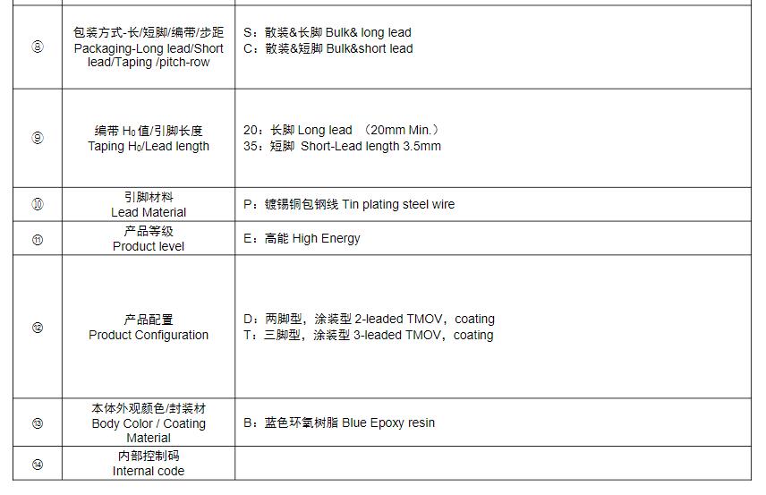 風(fēng)華高科R系列壓敏電阻器型號(hào)命名規(guī)則: