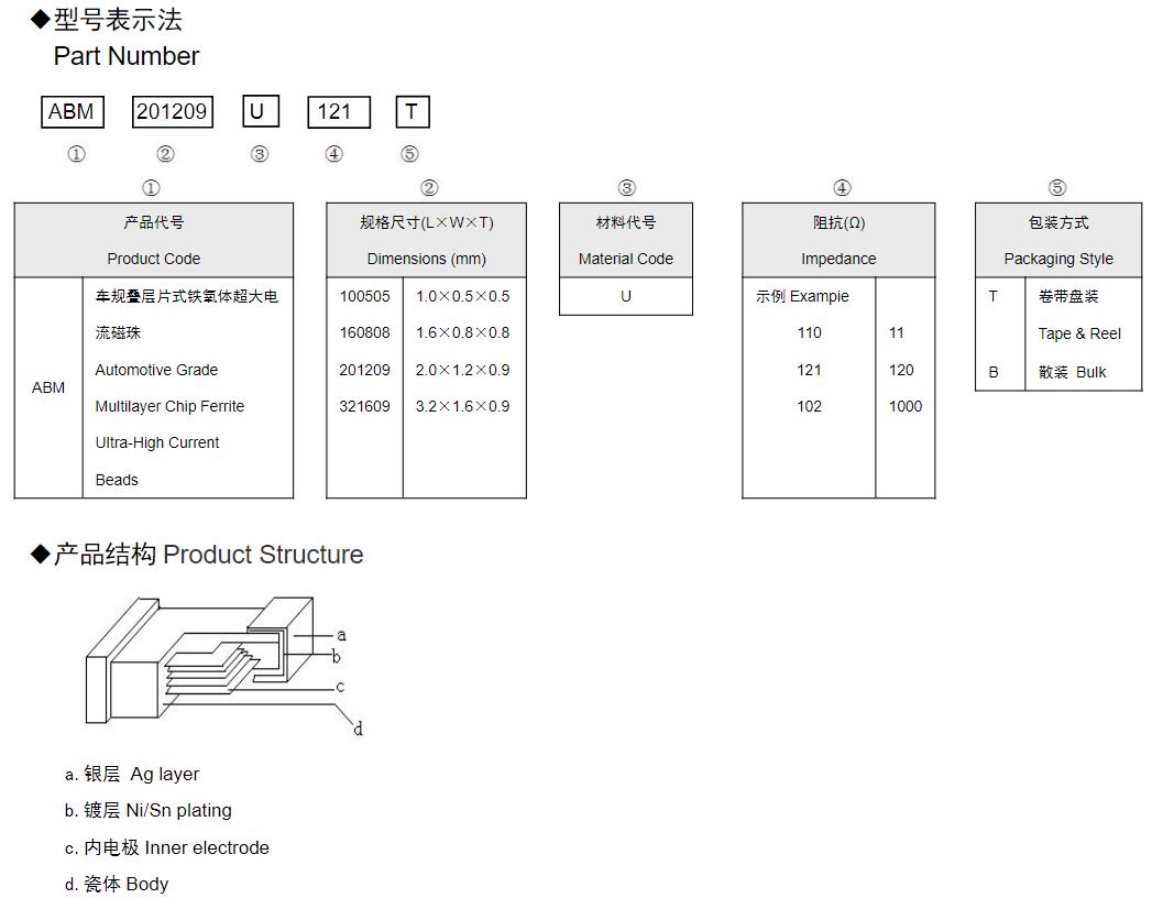 風華高科車規疊層片式鐵氧體超大電流磁珠命名規則: