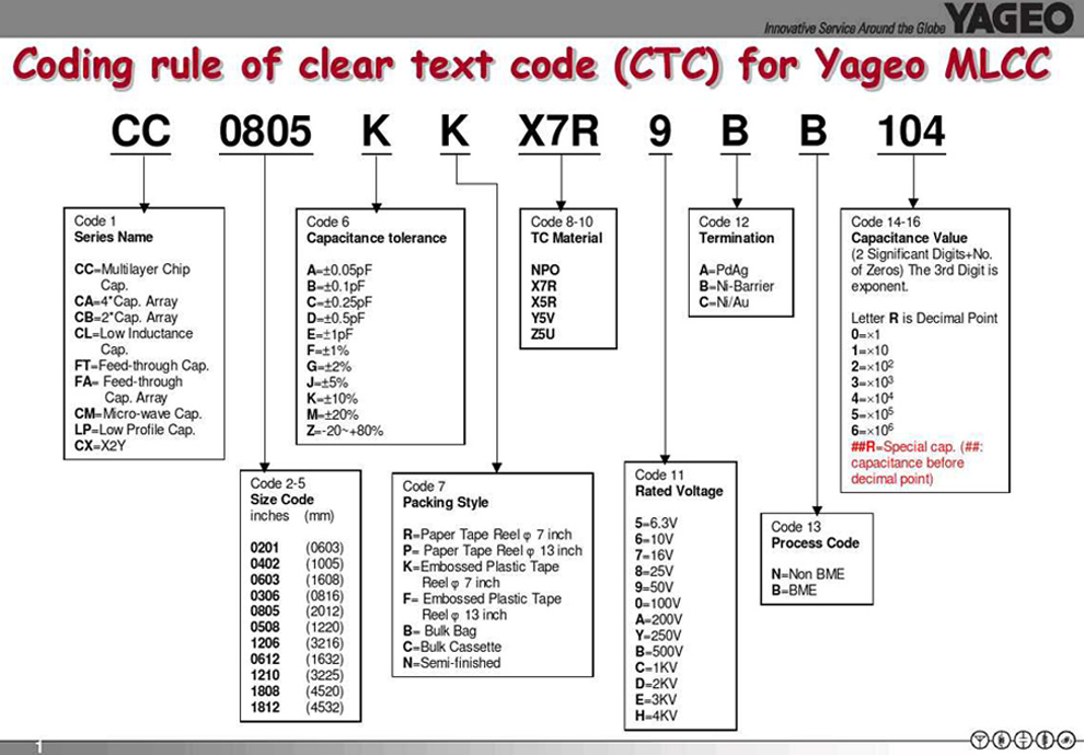 偏差:B=±0.1pF、C=±0.25pF、D=±0.5pF、F=±1%、G=±2%、J=±5%、K=±10%、M=±20%、Z=-20%+80%