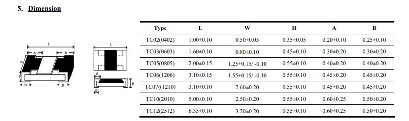 厚聲薄膜電阻規格尺寸: