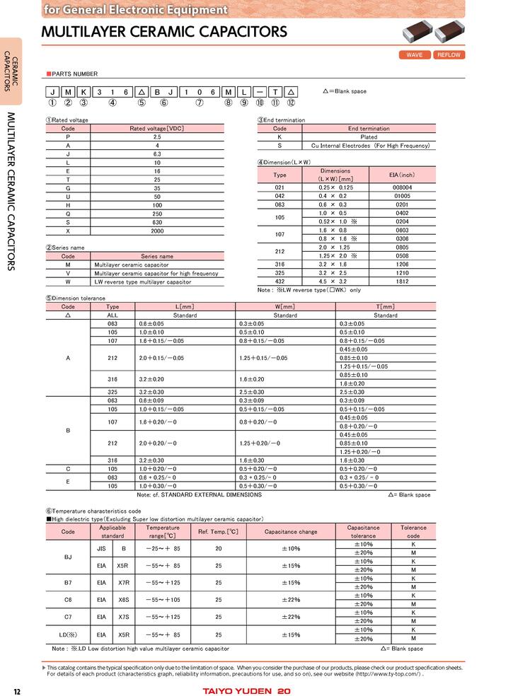那么可以看到太誘電容料號,J表示額定電壓用字母表示:P=2.5V A=4V J=6.3V L=10V E=16V T=25 G=35V U=50V H=100V Q=250V S=630 X=2000V