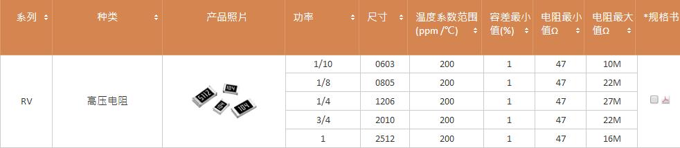 產(chǎn)品系列:國巨RV高壓電阻系列