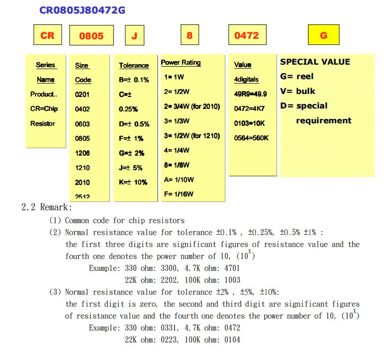 光頡貼片電阻料號編碼