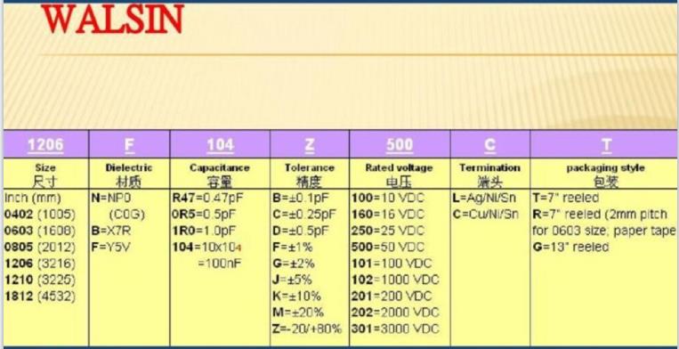 華新科貼片電容命名規則對照表