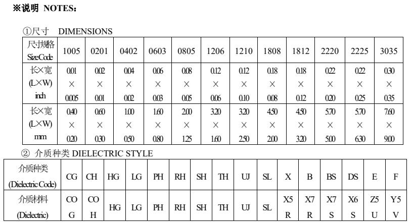 風華貼片電容尺寸有:1005 0201 0402 0603 0805 1206 1210 1808 2220 2225 3035等!風華電容及介質種類:※高頻類: 此類介質材料的電容器為Ⅰ類電容器,包括通用型高頻 COG、COH 電容器和溫度補償型高頻HG、LG、PH、RH、SH、TH、UJ、SL 電容器。其中 COG、COH 電容器電性能最穩定,幾乎不隨溫度、電壓和時間的變化而變化,